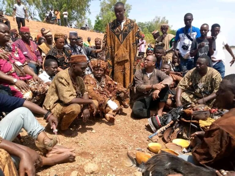 Le DJIBÔN est le Rituel Symbolique de » Verser l’Eau », en guise de Libation afin de se connecter à nos Ancêtres Méritants. La libation (DJIBÔN) est un acte sacré qui consiste à répandre un liquide (eau pure, eau enfarinée, alcool, vin, huile, miel, boisson sucrée, bière, lait…) en offrande à une divinité ou aux Ancêtres. C’est du reste l’introspection explicative donnée par le président de l’association Fasso Koudomdé, BIA KOUSSE DRABO aux hommes de médias qui ont assisté aux rites de la 4e édition, ce dimanche 04 juin 2023 aux abords du Tanghin barrage de Ouagadougou.