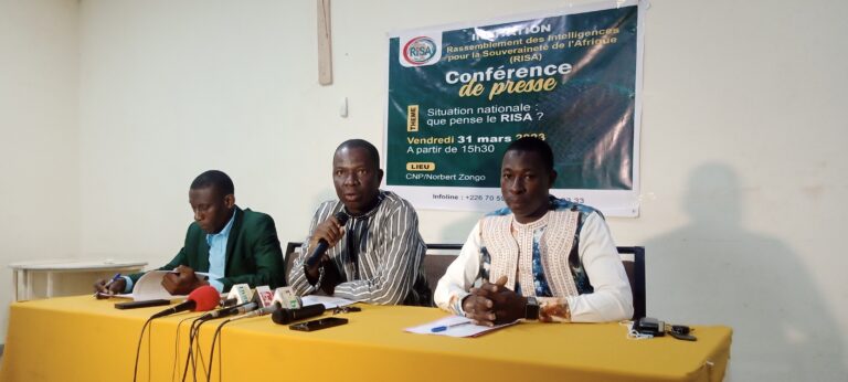 En donnant sa lecture de la situation nationale, les Leaders du Rassemblement des Intelligences pour la Souveraineté de l’Afrique (RISA) en conférence de presse ce vendredi 31 mars 2023 à Ouagadougou, s’est attablé sur cinq points d’actualités que sont : Son soutien et appel des Burkinabés à soutenir les Forces combattantes ; examination de la liberté d’opinion et de presse ; de la cohésion sociale ; de la gouvernance politique, de la diplomatique ; et la diplomatie.