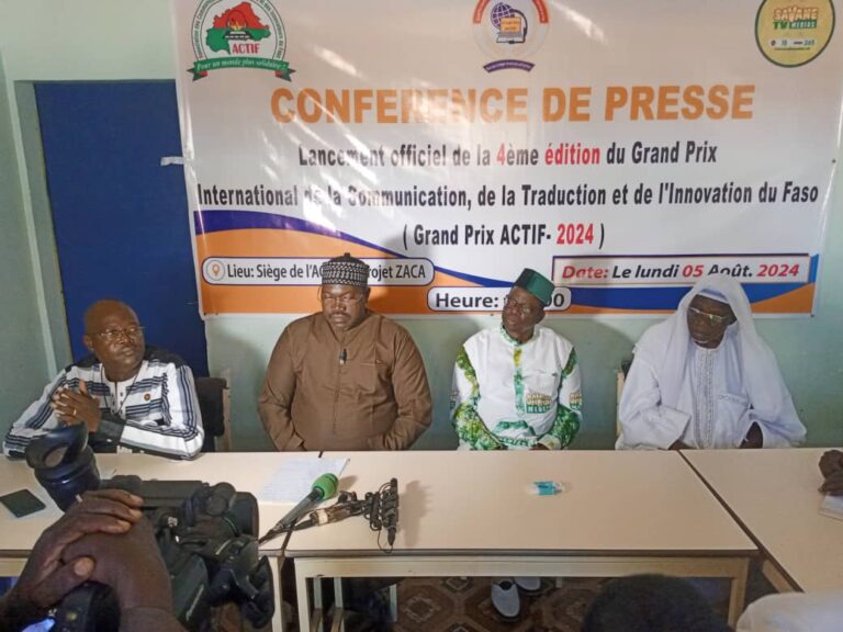 L’Association des Communicateurs, Traducteurs et Innovations du Faso (ACTIF) a officiellement lancé la 4e édition du Grand Prix International de la Communication, de la Traduction et de l’Innovation du Faso lors d’une conférence de presse le 5 août 2024 à Ouagadougou.
