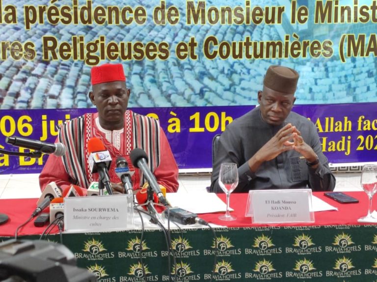 Le déplacement des pèlerins burkinabè par Etyopian airlines vers l’Arabie Saoudite se fera du 19 au 28 Juin 2022. L ‘annonce a été fait aux hommes de médias au cours d’une conférence de presse animé par Issaka Sourwema, Ministre burkinabè des affaires religieuses et coutumières (MAREC) en compagnie du comité d’organisation, ce lundi 06 Juin 2022 à Ouagadougou.