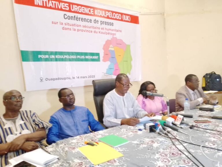 Les responsables de «Initiatives Urgence Koulpélgo (IUK) ont animé une conférence de presse sur la situation sécuritaire et humanitaire dans le Koulpélgo, ce mardi 14 mars 2023 à Ouagadougou.