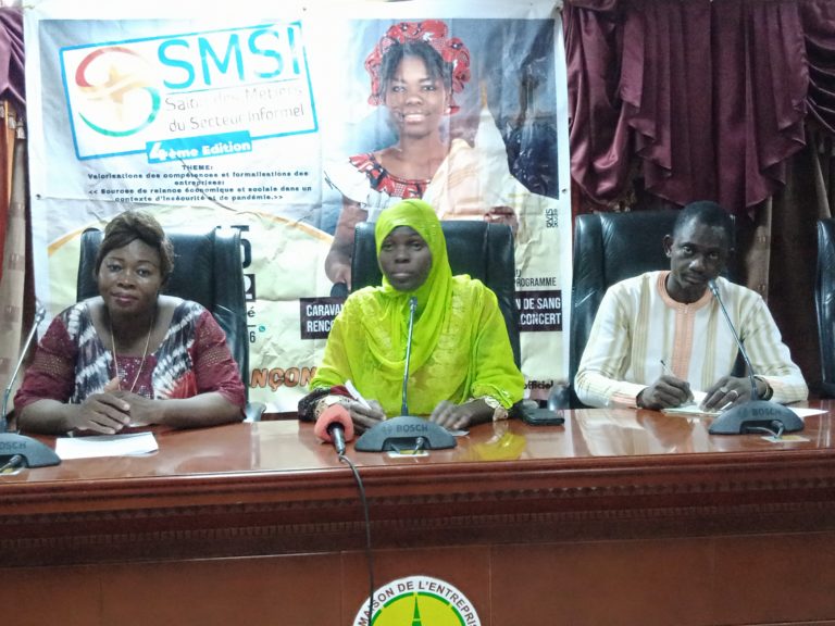 Le gouvernement burkinabè face aux conséquences socioéconomiques de la crise sécuritaire et ou autres a initié plusieurs mesures palliatives. Pour donc apporter sa touche à ce sursaut patriotique, plusieurs partenaires Œuvrant dans le développement du secteur informel se sont engagés c’est de là qu’est né le Salon des Métiers du secteur Informel(SMSI), une action qui vise à mener d’une part des réflexions sur la relance économique et la cohésion sociale dans un contexte de crise sécuritaire et d’autres part de mener des actions de sensibilisation des acteurs sur la formalisation de leurs entreprises et sur la promotion et commercialisation des produits des biens services. Nous dit Ouédraogo P. Sosthène, commissaire générale dudit salon en conférence de presse  ce mardi 03 mai 2022 à Ouagadougou, à moins 02 jours de son ouverture.